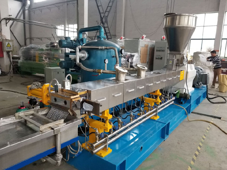 永杰雙螺桿造粒機(jī)由兩個(gè)嚙合、同鄉(xiāng)平行共轉(zhuǎn)的螺桿組成,螺桿安裝在封閉筒體的花鍵軸上。由于螺桿元件和筒體設(shè)計(jì)范圍廣,可根據(jù)工藝要求設(shè)置螺桿原件型材和工藝功能的各種組合。因此,雙螺桿擠出機(jī)能夠完成輸送、壓縮、混合、蒸煮、剪切、加熱、冷卻、抽吸、成型等功能,并具有較高的靈活性和充分混煉化合物的能力。